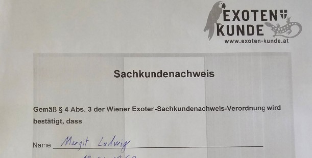 .....natürlich hat Frauchen auch den Sachkundeausweiß für Reptilien gemacht, um alle erforderlichen Kenntnisse für die Pflege und Haltung dieser Tiere zu besitzen.